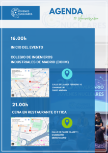 El evento tendrá formato de congreso en horario de tarde en el Colegio Oficial de Ingenieros Industriales de Madrid (COIIM), seguido de una cena de celebración, creando así un espacio único para el diálogo intergeneracional, el intercambio de conocimientos y experiencias y el networking profesional. La jornada combinará intervenciones de jóvenes profesionales con varios debates intergeneracionales en formato de mesa redonda sobre el presente y el futuro de la industria nuclear.¿Aún no te has inscrito al evento?