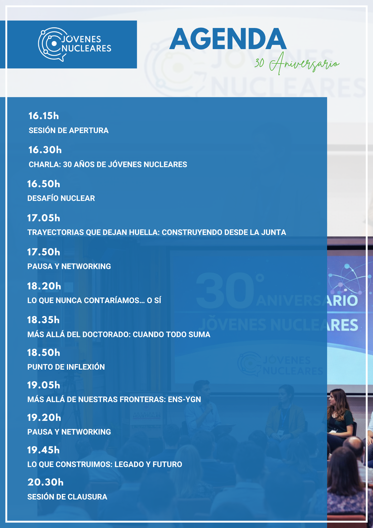 El próximo sábado 30 de mayo de 2026 celebraremos nuestro 30 aniversario con un encuentro muy especial que reunirá a estudiantes, profesionales del sector nuclear y colaboradores históricos de la organización.