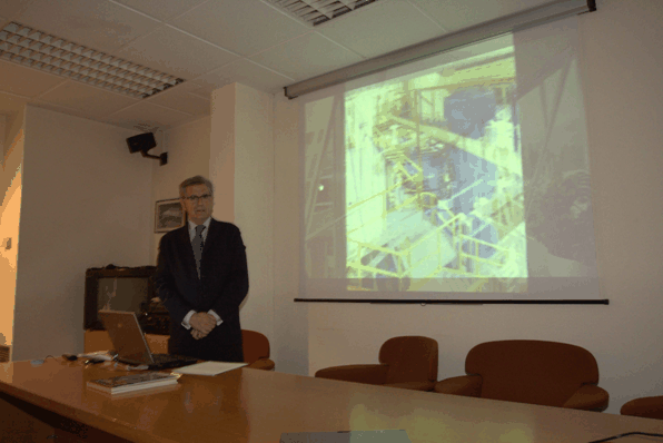El ponente habló de los hitos más representativos de la construcción de la central, desde la selección del emplazamiento hasta la puesta en operación, pasando por la obra civil, el transporte de equipos…